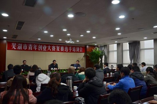 11月30日上午,“亚夏杯”芜湖市青年创业大赛复赛人员培训会在市政务文化中心E区3楼7号会议室召开。团市委副书记郝代伟、农村部负责同志出席培训会,会议邀请芜湖技师学院邓世海老师对进入复赛的42个项目的团队负责人及成员90余人进行了创业项目辅导和培训。