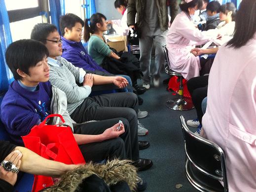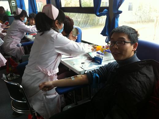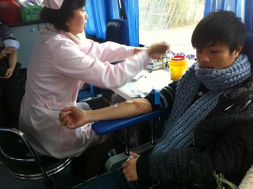 无偿献血是一项奉献爱心、关爱生命的社会公益事业,是衡量一个城市社会文明进步的标志。2012年12月20日,安徽芜湖技师学院院团委在南湖校区男生B1#、B2#楼之间组织全院师生进行无偿献血活动。当爱心献血车慢慢驶向男生公寓楼时,数名准备献血的同学早早地就在此排队等候。