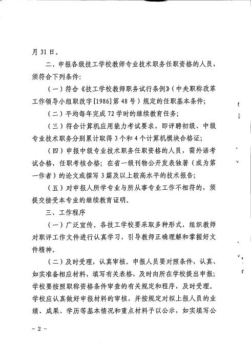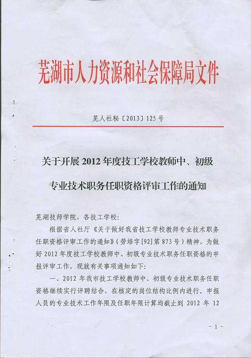 关于开展2012年度技工学校教师中、初级专业技术职务任职资格评审工作的通知