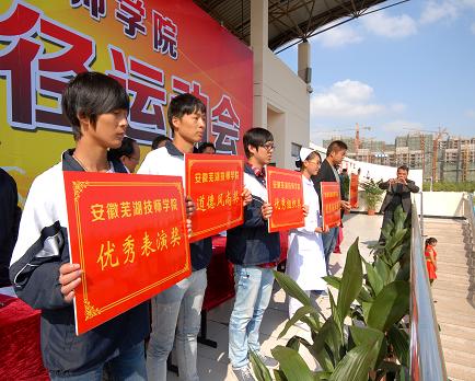 据了解,本届运动会共有58代表队678名运动员参赛。运动员们在各项比赛取得了优异的成绩,其中综合高中二班学生黄蕾同学打破女子跳高和女子跳远两项校田径运动会记录。 机械工程系和汽车与电气工程系获得优秀组织奖,信息技术与商贸管理系和护理系获得优秀表演奖,建筑工程系获得道德风尚奖。出席闭幕式的院领导为获奖团体和个人颁发了奖牌。