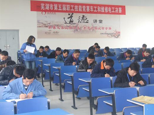 此次比赛分为车工、维修电工2个专场,由各单位层层选拔的选手分别进入理论和实际操作考试环节。他们凭借平时练就的娴熟技能,在规定时间内完成各项操作工序。此次决赛是高级工起点的考试,每个工种一等奖1名,获得者可荣获芜湖市技术状元称号,二等奖各3名,三等奖各6名。此场比赛不仅突显出各参赛选手的业务技能,且提高其专业素质,形成全市各相关行业比赶帮超的浓厚学习氛围。