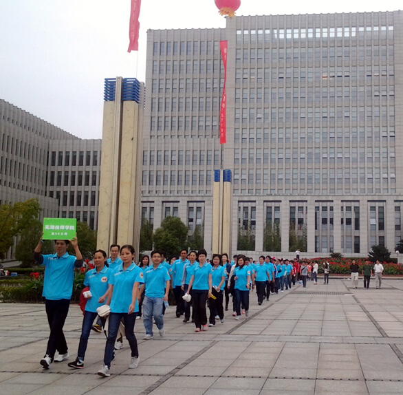 皖江之秋景色宜人,为庆祝中华人民共和国成立65周年,9月30日下午,芜湖市“迎国庆”全民健步走活动在市政务文化中心广场举行。学院广大干部职工与来自各条战线102个机关单位的2500余名健步走爱好者,从政务文化中心广场出发,沿着中央文化公园、雕塑公园、神山公园约5公里路径健步前行,以此庆祝新中国65周年华诞。
