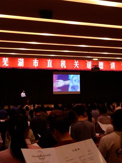 4月28日下午,我院组织参加由市文明办、市直机关工委在市政务文化中心E区二楼1号会议室举办的2015年第1期芜湖市直机关道德讲堂总堂活动,学院部分教职工参加了讲堂活动。