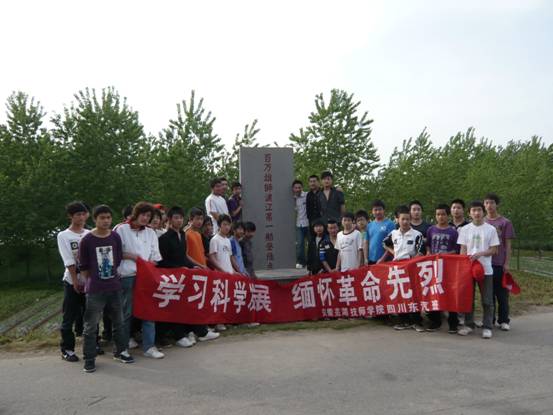 今年是新中国诞生六十周年,在六十年前的今天,解放军响应党中央号召“打过长江,解放全中国”,以芜湖突破长江天堑。为了缅怀这些抛头颅洒热血的革命英雄们,让我们这些生活在幸福、安定、和谐的二十一世纪的人们继承和发扬团结一致、勇往直前、不畏艰难的精神。近期,我院学保处领导带领41位四川学子参观了繁昌县夏家湖“百万雄狮渡江第一船登陆点”。在活动过程中,学保处老师详细介绍了渡江第一船登陆点的历史重要性,让同学们切实了解到此次活动的意义,四川学子纷纷表示要向革命烈士学习,将这种精神用在今后的学习和生活中,为家乡的建设努力奋斗。