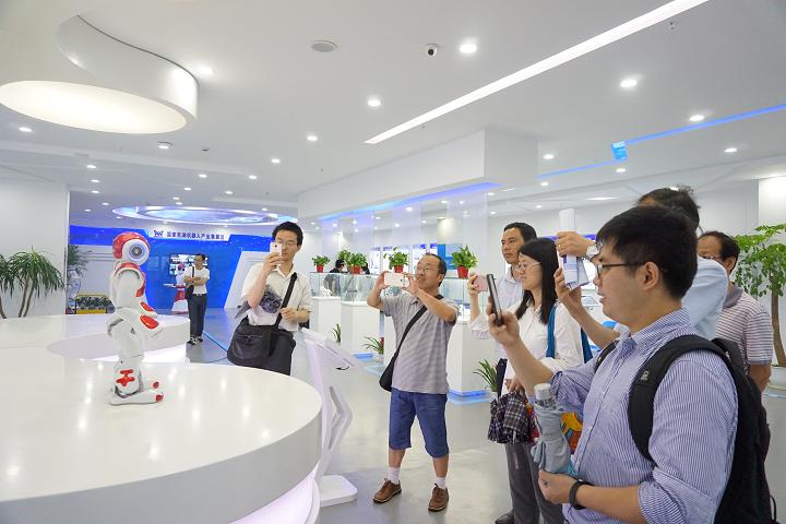 当天的参观活动中,党员们先后来到安徽埃夫特智能装备有限公司、芜湖瑞思机器人有限公司、芜湖哈特机器人产业及时研究院有限公司、安徽工程大学机器人产业技术研究院等企业,实地参观了解机器人技术研究成果及产业应用情况,并结合自己的专业进行详细咨询。每到一处,机器人的广泛应用和最新研究成果都给党员们带来很大的惊喜,纷纷拿出手机拍照记录下产业发展带来的一个个新成果。