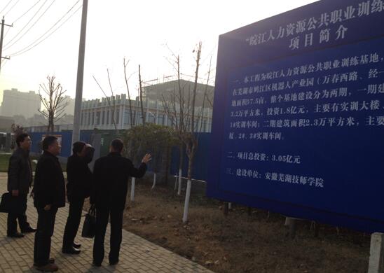 2016年12月16日下午,省人力资源和社会保障厅副厅长孙仁来我院皖江人力资源公共职业训练基地施工现场视察,市人社局副局长梁军陪同。