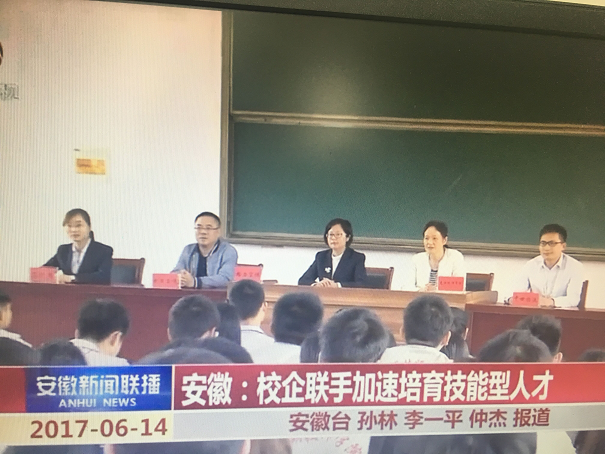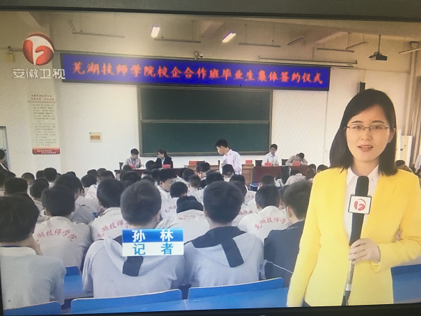 近日,我院校企合作班毕业生集体签约仪式隆重举行,副院长李华以及格力电器芜湖有限公司、中世国际物流有限公司等企业代表出席了仪式。安徽卫视《安徽新闻联播》对此进行了报道,并于6月14日播出。