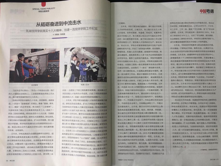 近日,反映我院全面落实十八大精神,创建一流技师学院的工作纪实在《中国培训》杂志2017年第8期特别主题宣传栏目中重点推出。