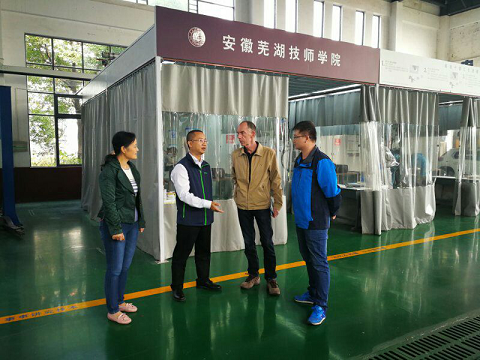 2017年10月27日德国费托斯工具全球培训总监MR.GERAROUS、中国区培训总监林少明及安徽区销售经理赵义一行来我院参观访问。院长方院生、党委书记朱正飞、副院长李华热情接待了远道而来的宾客,并详细介绍了学院的办学理念、办学特色,以及学院的发展规划等。随后,MR.GERAROUS一行参观了学院个实习车间,并在实训工位前,与汽电系领导和专业教师就产品应用、师资培训级联合办学进行了深入的探讨。