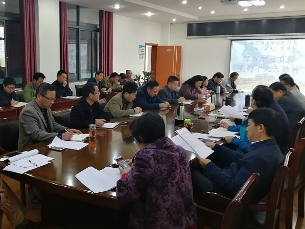 11月14日,我院党委召开中心组(扩大)学习会议,传达学习党的十九大精神。院党委全体班子成员、各部门、各党支部主要负责人参加会议。院长方院生主持会议。