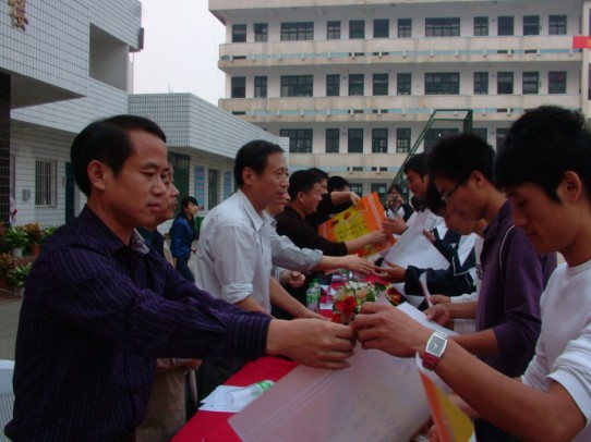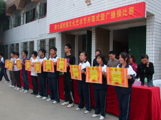接着,举行本届艺术节首项活动广播操比赛。参加比赛的是09级新生18个班级。经五位专业评委现场打分,09中专模具班荣获一等奖; 09高技电子商务班、09中专机电班荣获二等奖;09高技模具(1)班、09中专数控(2)班、09技师汽车综合班荣获三等奖。