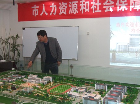 2010年4月12日下午,市人力资源和社会保障局党组书记、局长董萍、副局长吴群、吕跃华、梁军及有关处室负责人一行12人来我院新校区进行工作调研。院长方院生、书记张海青及班子全体成员、部分科室负责人陪同并参加了调研座谈会。