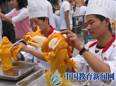 资料图片:职校生在进行烹饪雕刻比赛。