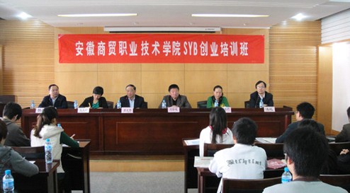 10月22日,由我院与弋江区人社局、区团委、安徽商贸职业技术学院联合举办的大学生SYB创业培训班开班典礼在安徽商贸职业技术学院行政楼二楼会议室隆重举行。安徽商贸职业技术学院副院长郑光贵、芜湖技师学院副院长刘宗斌、弋江区人社局副局长石泉莉、弋江区团委书记王亚莉、院团委书记韩飚、市新闻单位记者等出席开班典礼。开班典礼由学生处、招生就业处处长汤飚主持。