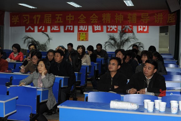 这次专题讲座是院党委组织学习贯彻十七届五中全会精神的一项重要安排。院党委还下文要求各支部组织全体党员干部联系自己的工作和思想实际,学好十七届五中全会文件,把思想和行动统一到全会的各项要求上来,切实做好今年各项工作和谋划好明年乃至今后五年的工作。