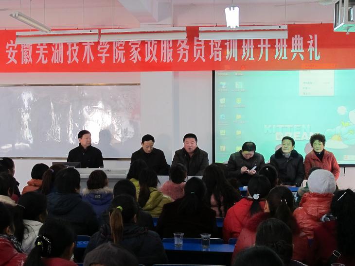 我院技能开发中心与2010年12月29日分别在芜湖市镜湖区方村街道、芜湖县职教中心、芜湖县新建社区、以及南陵县呈祥村开设了家政培训课程,本次家政培训开设三期共五个培训班,培训人数达300人,培训对象广泛,更有少部分男士报名参加培训。2011年4月27日经市商务局、市财政局、市妇联、市工会验收测评后,培训合格人数达300人。