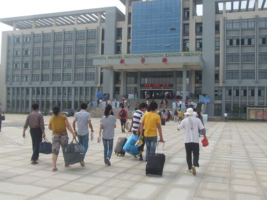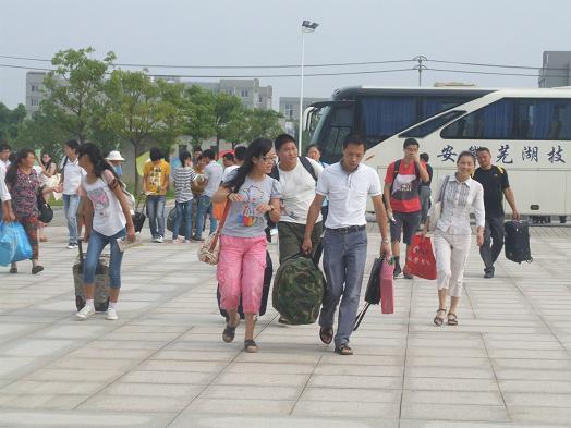 金秋的安徽芜湖技师学院,到处彩旗飘飘,喜气洋洋。2012年9月1日、2日,我院2012级新生报到。1日清晨,当第一辆满载着新生及家长的大巴缓缓驶进学院时,我院2012年迎接新生工作全面展开。招生就业处等相关处室及各系部在教学楼大厅里摆好了自己的工作台,热情迎接来自全省各地的新生们。各系部领导分别在各接待点指导迎新工作,新生入学注册、缴费、住宿等各项报到工作均井然有序地进行。学生志愿者穿梭在校园里,帮助新生搬行李、办理报到手续,热情引导新同学入住宿舍。此外,办公室、学保处、团委、系部对校内橱窗、宣传栏、板报进行了精心的布置,为新生到校营造了良好的校园文化氛围。