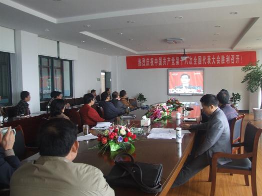 举世瞩目的中国共产党第十八次全国代表大会于今天上午9点在北京人民大会堂隆重开幕。为了及时了解十八大的盛况,认真领会十八大的重要精神,我院党委以文件的形式下发了收看十八大、学习十八大精神的通知。今天上午8:40学校党委中心组成员及全体中层干部在行政楼三楼会议室集中收看了十八大现场直播。大家在会场认真收听,并做好笔记。收看结束后,朱书记强调,学习贯彻十八大精神,是学院当前和今后一个时期的一项重要政治工作,各支部、各部门要高度重视,营造学习氛围,报道活动信息,要结合本部门工作,着力解决存在的问题,把学习激发出来的干劲凝聚到争创市级文明单位标兵和示范校建设的实践中去,促进学院的发展。