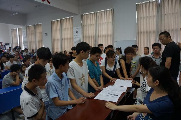 7月13日,芜湖技师学院举行首届铁路客运服务及无人及应用技术专业招生面试会,当天,校园里人潮涌动。教学楼二楼面试教室外拉着围栏,数百名学生们在候考室内等候面试,陪伴孩子们前来的家长则在一旁观望,焦急地等待着孩子的面试结果。