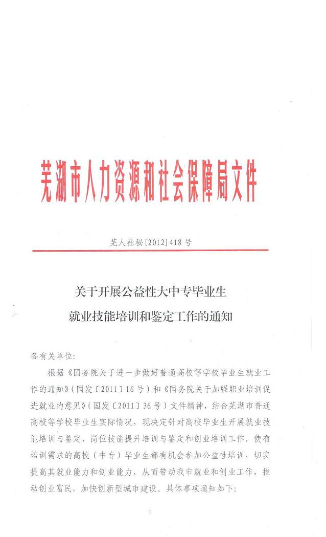 关于开展公益性大中专毕业生就业技能培训和鉴定工作的通知