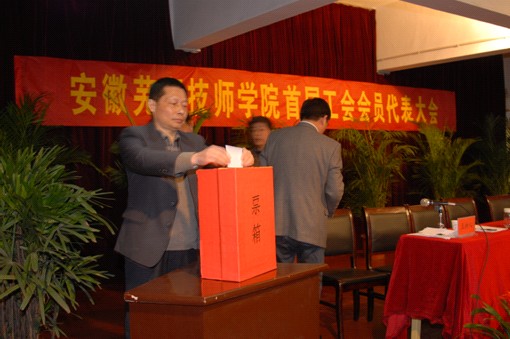 会议听取了党委委员蒋光裕同志代表工会筹备组所作的筹备工作情况报告,听取审议和通过了纪委书记陈兴亮同志宣读的《工会委员基本条件》及《选举办法》。随后通过无记名投票方式,差额选举产生了首届工会委员会。党委书记张海青同志作了会议总结。指出学院首届工会会员代表大会召开,是全院教职工生活中的一件大事,是我院贯彻落实以人为本的科学发展观、推进学院民主管理、把学院建成高水平的一流技师学院的重要举措。必将有利于我院团结动员全体教职工为学院的快速发展建功立业,不断开创学院工作新局面。
