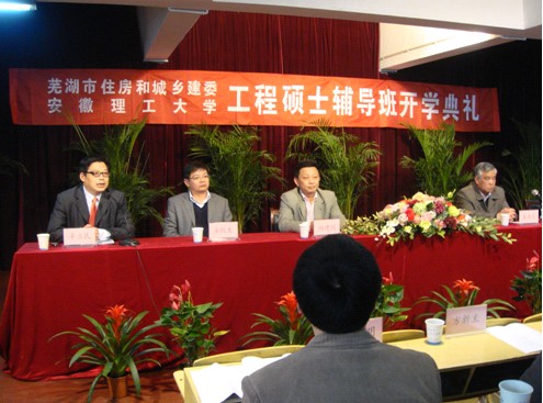 为迎接“皖江城市带承接产业转移示范区”难得的发展机遇,4月17日下午,安徽理工大学与芜湖市住房和城乡建委研究生培训班在我院南校区顺利开班。理工大学副校长昝连生,市建委副主任陶建国和学院院长方院生等领导出席了开班典礼。