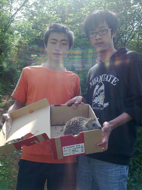 今天上午八点四川班学生谢高、付雷两名同学在去往教室上课途中,无意间发现了一只迷路的刺猬。刺猬是国家二级保护动物,他们在激动之余想到更多的是责任,他们将其保护起来之后交予学保科老师处,随后在老师的带领下,将它送回大自然,这种爱护动物,保护动物的行为值得大家学习。